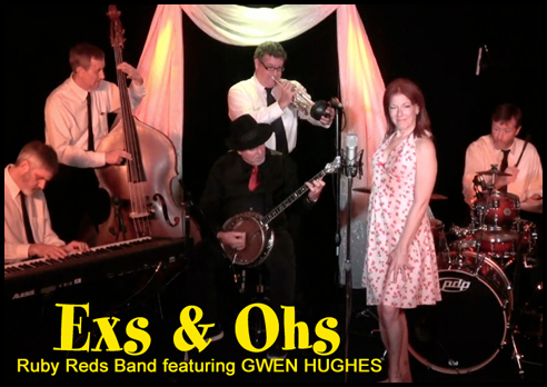 "Exs & Ohs" featuring Gwen Hughes on the vocals with guests Jez Graham on piano and Mike Hinton on drums! [pictured L-R: Jez Graham-piano; L.A. Tuten-bass; Rocky Ball-banjo; Marty Martin-trumpet; Gwen Hughes; Mike Hinton-drums] video by Mike Natchus [click the photo to watch] |
